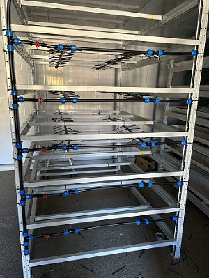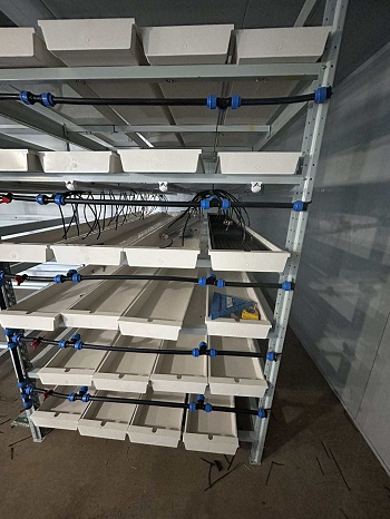 The hydroponic grow system delivers a thin film of water using NFT technology